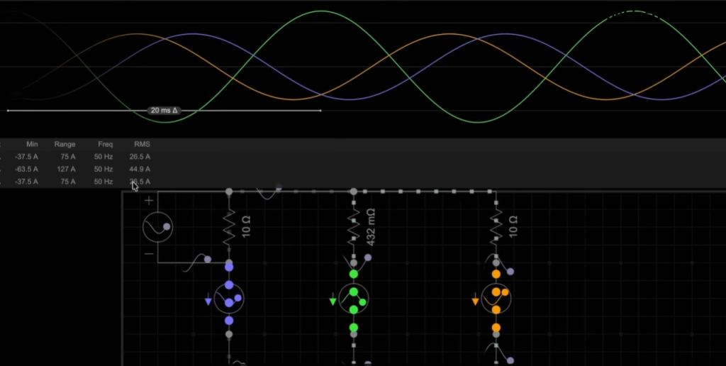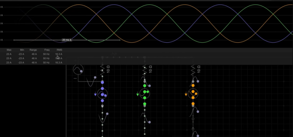 In a balanced condition, the current waveforms remain clean and sinusoidal. Phase angles stay correct, and the system behaves predictably. Voltage drop across each phase remains the same because the impedance values are identical.