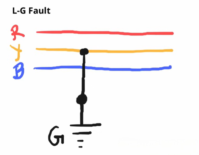 - Line to ground fault (LG fault) – One phase touches the ground. This is the most common fault.