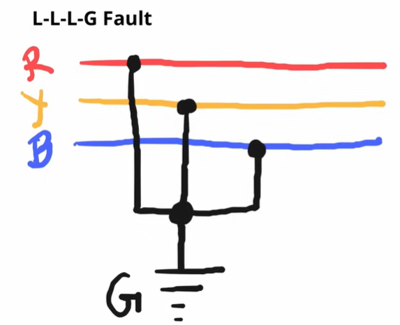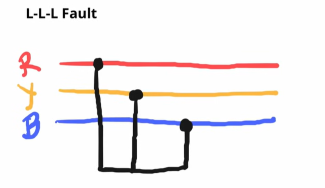 - Triple line to ground fault – All three phases short together and connect to the ground.