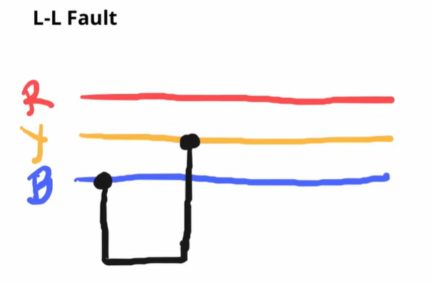 - Double line to ground fault – Two phases short together and connect to the ground.