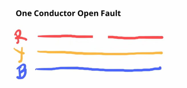 - In a one or two conductor open fault, a three-phase load puts extra stress on the remaining conductor. This may cause overheating, insulation failure, or breakdown.