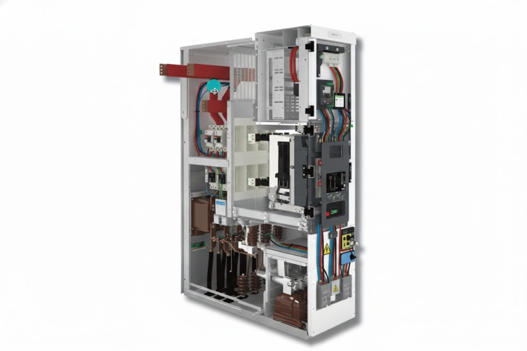 In MV, the story changes. MV switchgear comes as one packaged panel. Everything sits inside the metal enclosure: