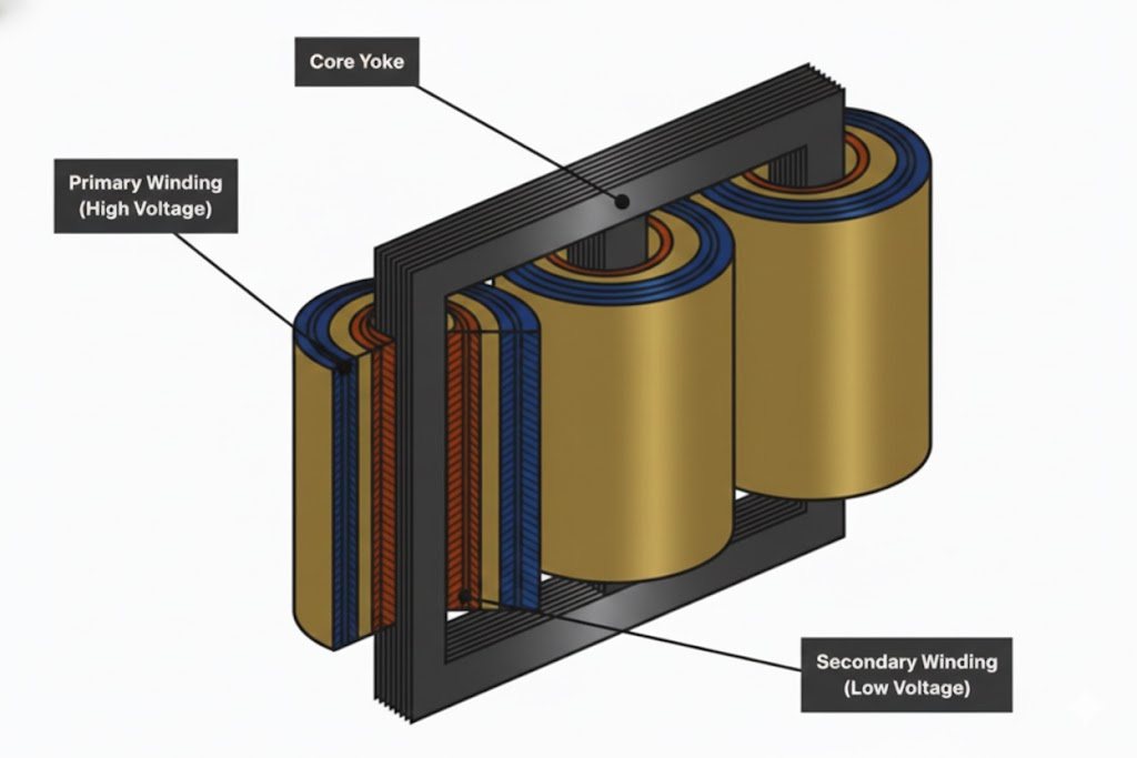 Second, the primary side sits farther from the core. So adding taps is simpler. On the secondary side, the winding sits near the core. It is hard to create tap points there. So it adds complexity.