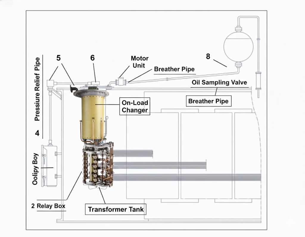 OLTC units sit inside the transformer tank. They remain oil-immersed. Some transformers have a separate oil compartment for the OLTC. The insulation must be strong. The mechanical system must also be precise. It has many parts. These parts work under stress. They handle arcs and switching loads.