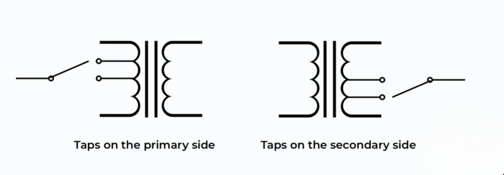 A transformer arrives with fixed windings. We cannot open it and add turns. So we use taps. Taps are points on the winding that let us select different numbers of turns. They sit at set positions. If we connect at one tap, we get one value. If we select another tap, we get more or fewer turns.