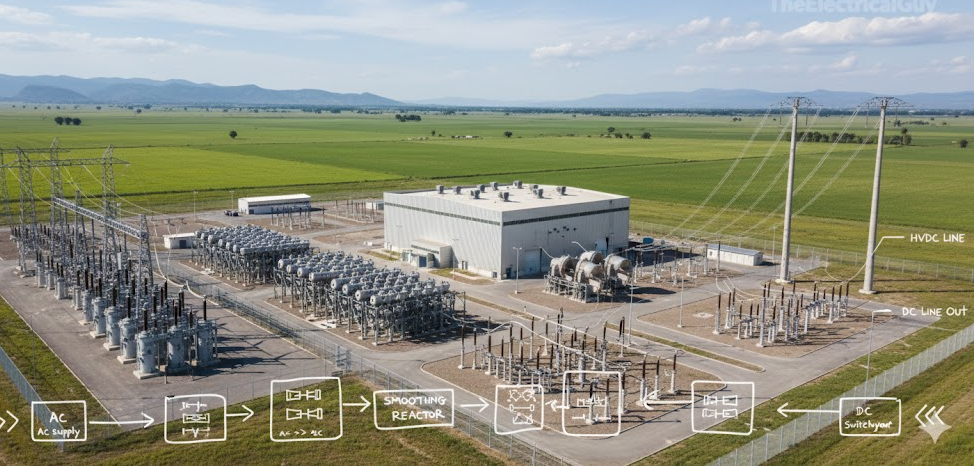 What Are the Components of HVDC Transmission System? Explained Simply https://www.theelectricalguy.in/wp-content/uploads/2026/01/maxresdefault-1-1-1024x576.jpg 1024 576 Gaurav Joshi Gaurav Joshi https://secure.gravatar.com/avatar/f6a3006f3f7233a71d79d0e705c167ae12516870e5239627478665ae377435b3?s=96&d=mm&r=gHigh Voltage Direct Current transmission is becoming important in modern power systems. In specific situations, it offers clear advantages over traditional AC transmission. However, HVDC is not a simple setup. It requires several carefully designed components working together. Each component plays a defined role in converting, protecting, and transmitting power.