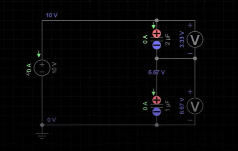 To understand voltage division, consider a simple example. Suppose a 10-volt source is connected to two capacitors in series. The voltage across each capacitor divides based on their capacitance.